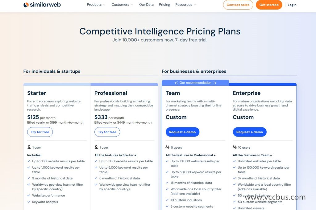 关于Similarweb的订阅售价如下图,价格区间从最低125美元/月到333美元/月,有更高需求的还可以私人定制。付费订阅Similarweb需要使用万事达Visa信用卡,如果您的跨境电商外贸营销团队需要订阅此工具的,推荐商务虚拟信用卡平台
