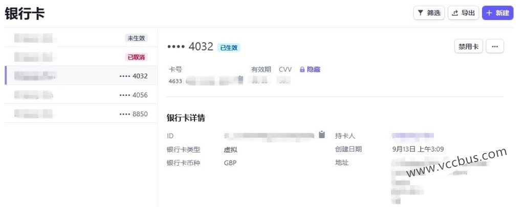 创建卡片过程就比较简单了。首先新建一个持卡人资料,可以是个人或公司。以个人名字作为持卡人的,输入基本的个人信息,包括姓名、出生日期、账单地址(可自定义全球地址)、邮箱、手机号(填写手机号会开启3DS安全认证功能)等,其中有些内容是可选项,可填可不填。卡片分虚拟卡和实体卡两种,虚拟卡无开卡费,即开即用,有效期3年,是一张4633卡BIN的英国企业信用卡,英镑币种。实体卡仅支持邮寄到欧洲少数几个国家,根据快递不同,运费从1-18英镑不等,外加3英镑/张的卡片印刷费,实体卡可自定义卡片外观样式。支持设定卡片消费限额,支持设置针对不同类别商户的允许或阻止的消费控制,支持随时设置卡片为禁用或激活状态,可随时销卡。