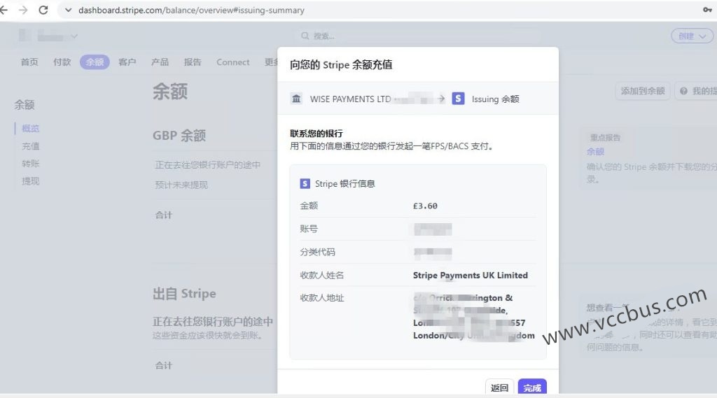 - 如果你的Stripe余额账户中没有资金的话,可以用收款提现的银行账户,例如我这里用的Wise,向Stripe公司发起一笔对公转账,即可充值资金到Issuing余额。
