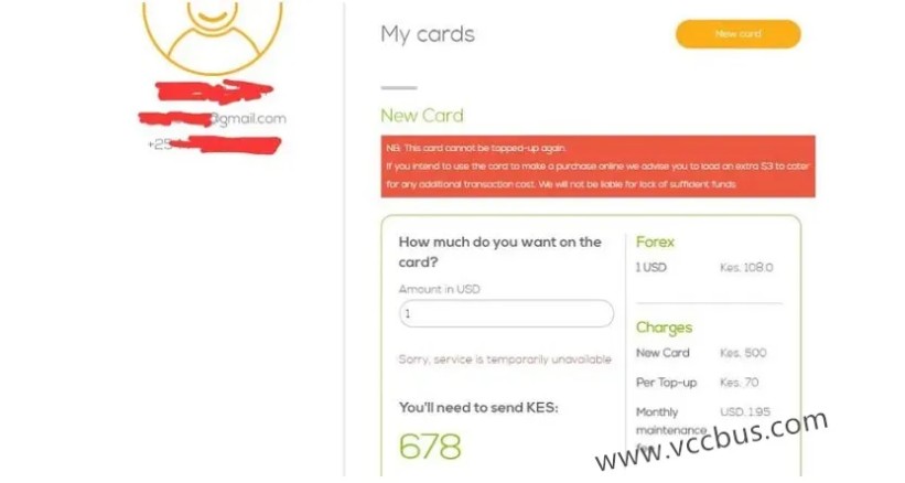注册帐户需要验证电子邮件地址、肯尼亚地址、肯尼亚手机号码和个人身份信息是可选的。登录后,您可以一键打开卡,该卡是一次性使用,不能重复充值,充值金额将从您的肯尼亚手机账单中扣除。.详细收费结构如下: