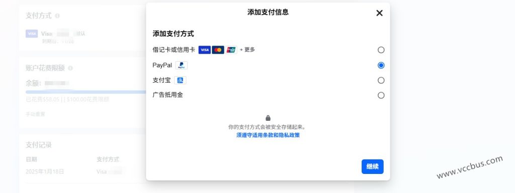 PayPal:PayPal通过关联银行账户或PayPal余额直接支付,提供了无需暴露卡信息的便利性。然而,PayPal的消费限额可能较低,且若PayPal账户余额不足,部分用户报告交易失败。此外,PayPal与Facebook广告的整合有时会导致支付处理延迟,可能会减缓广告活动启动。