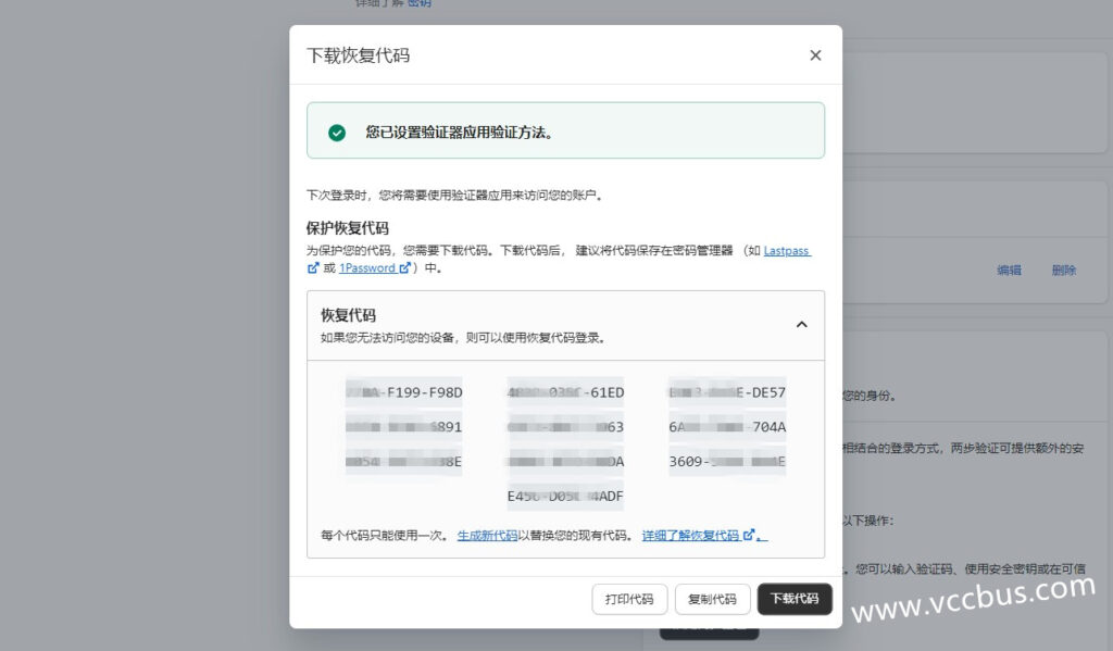 为了您的Shopify账号绝对安全,还是建议把两步验证都设置齐全,当然首推身份验证器的方式,手机接收短信方式其次,另外最重要的还是要把“恢复代码”设置了,这是在遇到Shopify账户无法登陆时最后的救命稻草!