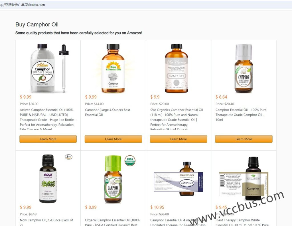 对于”Camphor Oil”这个词基本都是英语欧美区的搜索来源,建站的话需要是英文站,另外我自己目前没有这样的货源,并且是液体的,即使有货源快递运输也是个问题,独立购物站是个大工程暂不考虑了。围绕关键词反复搜索,无意中发现了 www.camphoroil.com(现已倒闭)这家网站,这是个单页面的站点,分析代码全是亚马逊联盟营销Amazon Affiliate Program链接,想必站长应该是个专门搞亚马逊联盟的,搜索到的域名是www.camphoroil.com,打开后却跳转到了https://bestshopever.com/best/20686。肯定没错,专门针对亚马逊联盟做的站,域名注册的都这么有针对性,跟内容十分匹配,他肯定做了不只一个站,而且都在一个主机里,单页面使用的容量小,一个主机能装好多个单页面网站。好吧,兄得,我也依葫芦画瓢了,搞个跟你一样的试试!于是把这个单页面网站源代码扒了下来,现在还保存着,可参考《Google Facebook Ads跑Amazon Affiliate联盟营销单页面落地页源码资源免费分享》。