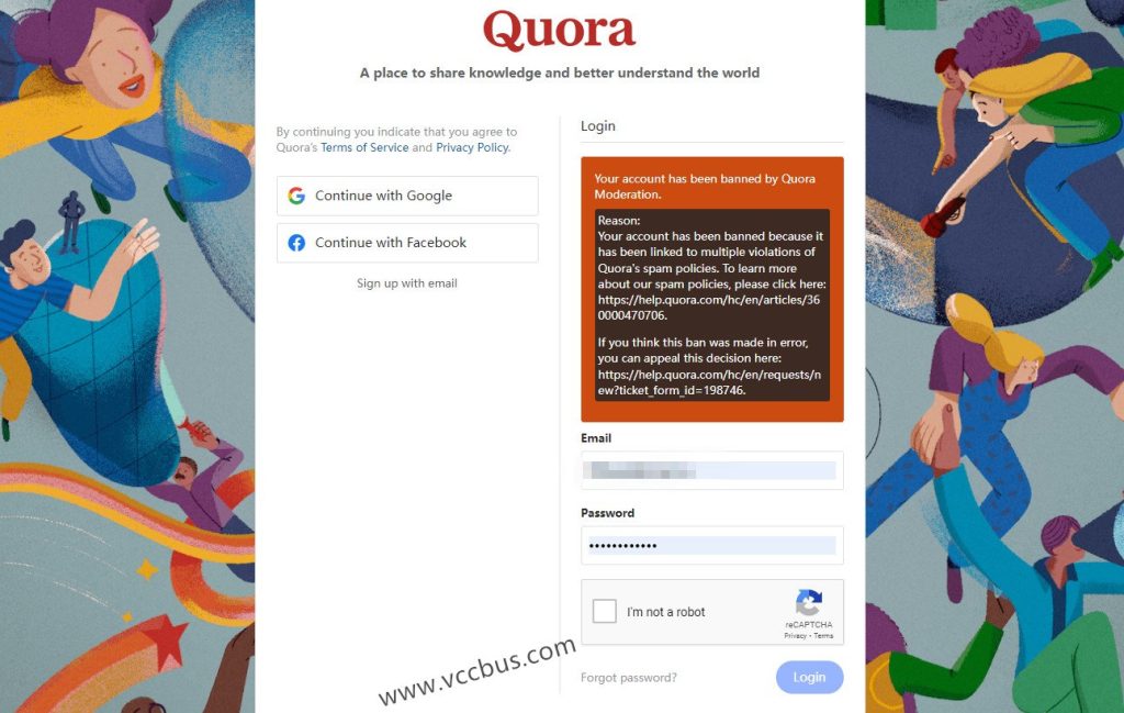我的Quora账号又被封号了,这已经是最近几天又被封的一个了。