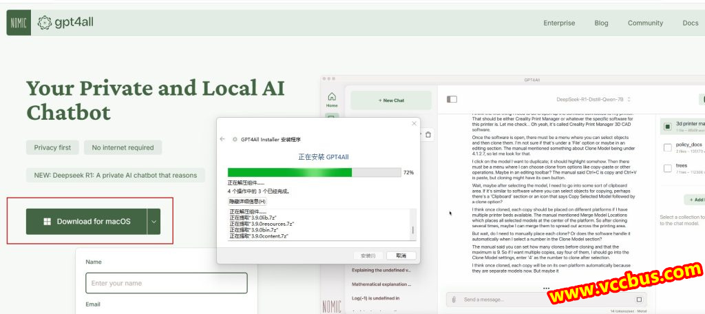 GPT4All的使用方法非常简单,首先登陆其官网:https://www.nomic.ai/gpt4all,下载跟你电脑操作系统匹配的安装包,例如Windows。然后安装。