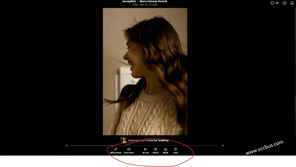 还有更牛逼的。你可以在其他网友创作的视频的基础上,对作品进行剪辑、切割、生成故事小电影、修改分辨率、修改提示词等操作,真的是懒人首选!