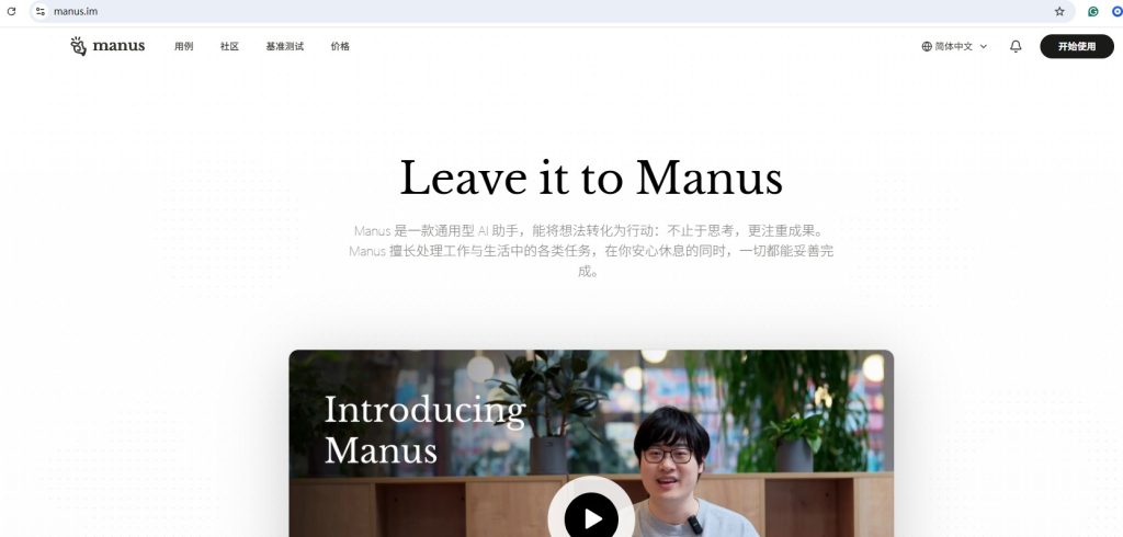 首先访问Manus官网,打开浏览器,输入以下网址进入Manus官网:https://manus.im。Manus官网页面为全英文,但大多数现代浏览器(如Chrome)会自动将页面翻译成中文,方便阅读。如果未自动翻译,可手动启用浏览器的翻译功能。