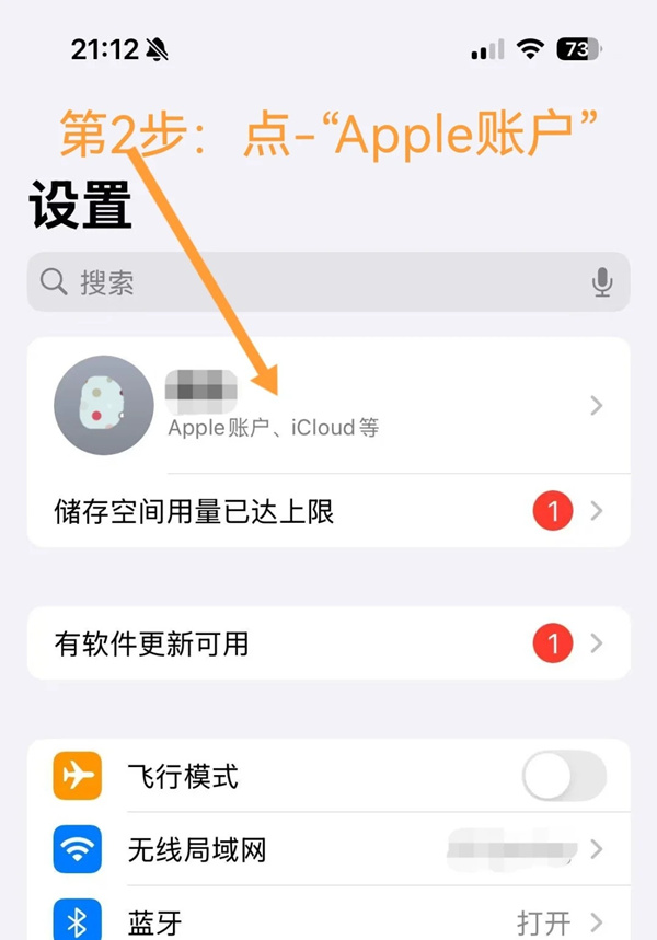 第2步:然后点“Apple账户”。