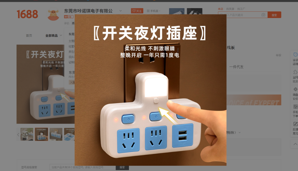 例如,我要从1688采购这款插座产品,图片中都是中文文字。