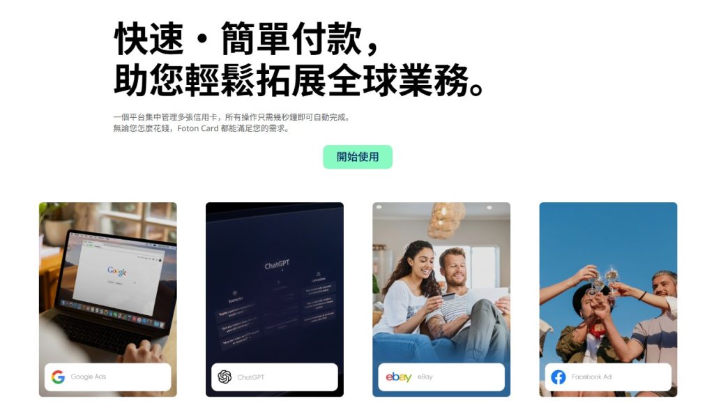 FotonCard虚拟信用卡平台是一家专门服务于跨境电商、广告营销、付费订阅的万事达Visa在线发卡平台,您可以在线创建美国香港等虚拟卡用于例如下单采购、支付店铺月租、补单、独立站降拒付率、支付Facebook广告费、订阅各种网络营销工具、订阅人工智能AI工具等用途。拥有独立后台,随时开卡删卡,费用低廉,详细可参考《FotonCard虚拟信用卡无限开卡平台美国香港Visa虚拟卡跨境电商Facebook广告订阅ChatGPT》。