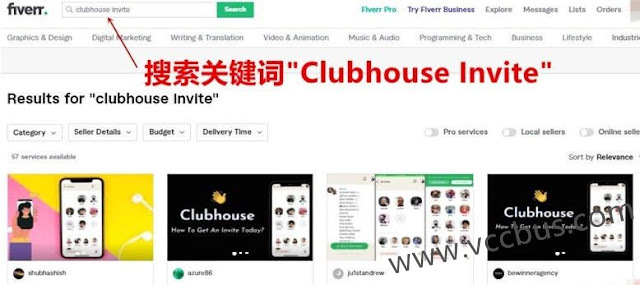 之后在搜索框中搜索关键词”Clubhouse Invite”,这样就找到出售此服务的所有卖家。Clubhouse邀请售价一般十几美金起步,那些标价特别低的都是骗点击的,进去后根本不是那个价,在选择卖家时顺便参考一下他的销售记录和评价,找一个靠谱的卖家。