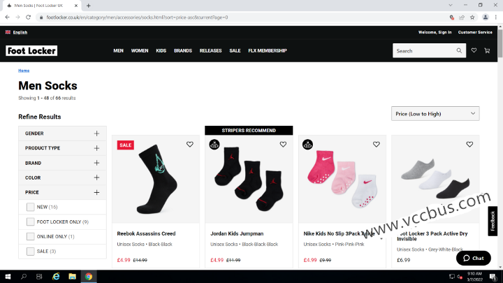 首先登录远程Windows服务器,打开Foot Locker UK官网:https://www.footlocker.co.uk/,网页浏览正常,并未被限制,随便选个便宜的袜子下单测试。