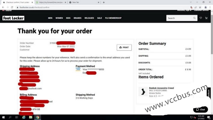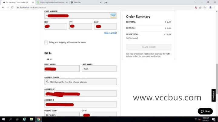 简单测试某英国虚拟信用卡在Foot Locker UK下单采购付款。