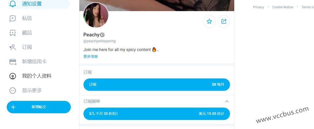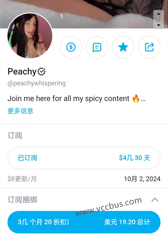 付费订阅OnlyFans博主的精彩内容通常需要收费,每位博主设置的价格可能都不一样,例如这位Peachy小姐姐设定的订阅价格为8美元/月或者19.2美元/3个月。