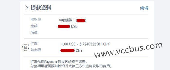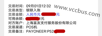 经实测,当天上午发起提现到中国银行,当天下午2点就到账,时效还是不错的。交易记录显示是从第三方公司以人民币方式进来的,Payoneer是有外汇业务支付牌照的,通过Payoneer是不受每年5万美金结汇限制的。