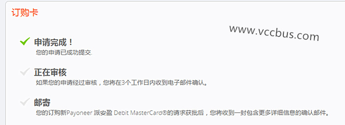 最后坐等Payoneer派安盈再次审核和邮寄卡片。
