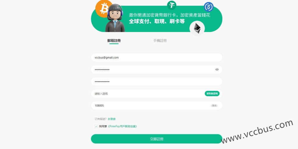 点击这里进入PokePay官网注册账户。PokePay网站没有适配PC网页端,所以比较适合在手机浏览器竖屏操作。支持两种方式注册账号,Email邮箱或者手机号,全球手机号码均可注册,我这里就用Email邮箱注册好了。