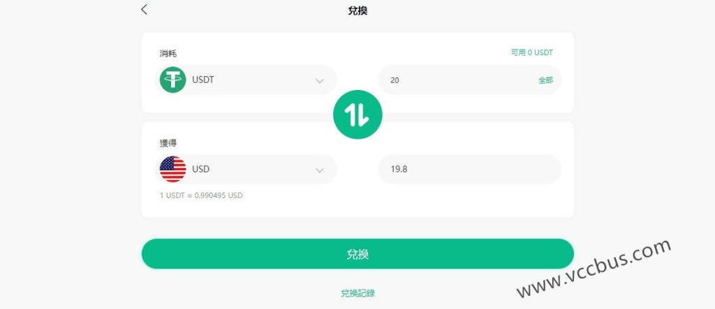 然后进入“兑换”页面,把USDT按照接近1:1汇率兑换成为美元法币。