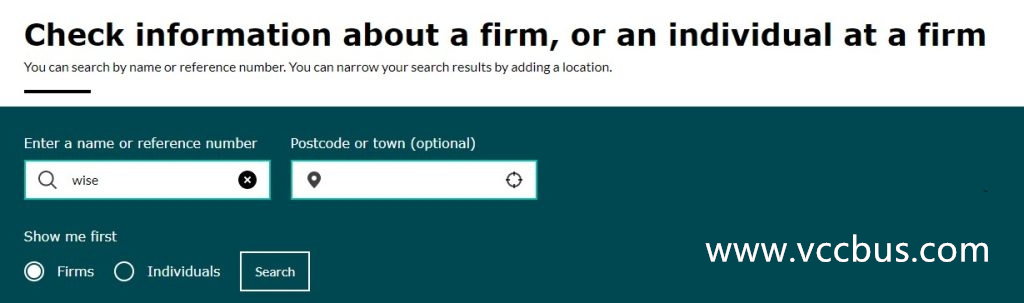 这里以查询“Wise”为例,打开以上网页,输入关键词Wise,下方选择Firms公司。