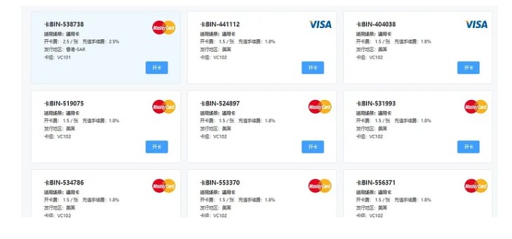 支持自定义持卡人姓名和账单地址,当然也可以使用系统自动生成的,支持无限开卡。如果您有美国公司执照以及公司对公账户的话,那么可以做到0开卡费,如果您使用我们这款平台的话,开卡费最低1美金,充值手续费最低3%,具体看您要办理的哪个会员级别套餐了。初始免费用户仅能开10张卡片,最高级额企业用户支持无限开卡!