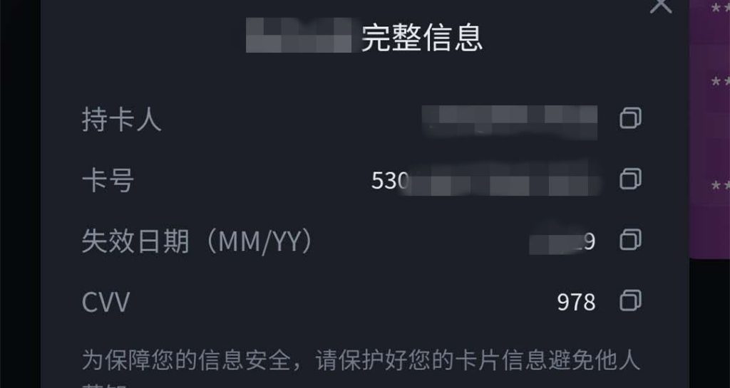 - 在填写一些个人信息资料时,尤其是那种需要填写银行卡信息的,一张有效的虚拟Visa卡号很大程度上能保护我们的隐私。