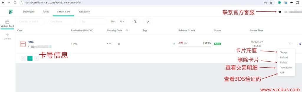 通过这个虚拟卡平台,你可以创建出真实有效的卡号、到期日、CVV安全码这些信息,然后就可以绑定用于在线支付了。你往这个卡内充值进入多少金额,就可以消费多少金额。卡片有效期1-3年不等,有效期内可反复充值使用。FotonCard虚拟卡平台的卡片都是对接自上游的发卡银行,所创建生成的虚拟卡号信息和卡内余额都是跟上游发卡银行同步的,可以在全球支持万事达Visa的电商平台绑卡消费,是完完全全真实有效的虚拟Visa卡。