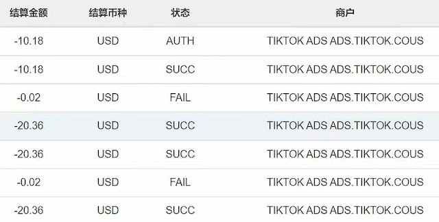 举例香港418122虚拟U卡支付TikTok Ads广告费测试