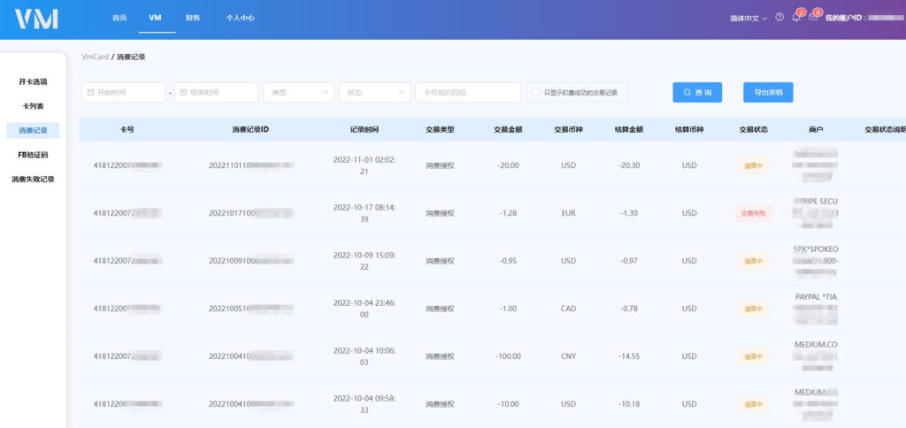 为解决新用户不知道选择哪款卡BIN适合自己,VMCardio虚拟U卡拥有功能强大的消费场景功能。即,用户输入商户关键词,可查询出近期有哪些卡段在这个商户有过成功支付记录,用户可优先选择在该商户支付成功率高的卡段。